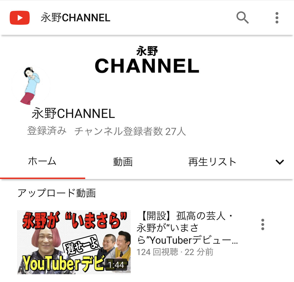 お笑いビッグ3の永野もYouTubeデビューかー
