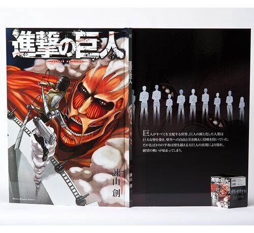第1話と第2話を収録した全96ページの「巨人用 進撃の巨人」は、通常の新書サイズコミックスと比べ約36倍の面積で、“エレン巨人”が読むサイズを想定して製作。「別冊少年マガジン」にて連載されていた「進撃の巨人」が、2021年4月9日に最終回を迎えるにあたり、作品を盛り上げる一環として3月6日に発売。「縦1m、横70?、重さ13.7kg」というサイズに加え、100冊が売れた場合にはギネス世界記録として認定されることも話題となり、販売開始から約2分で完売した(※販売価格は16万5000円/税込み)。